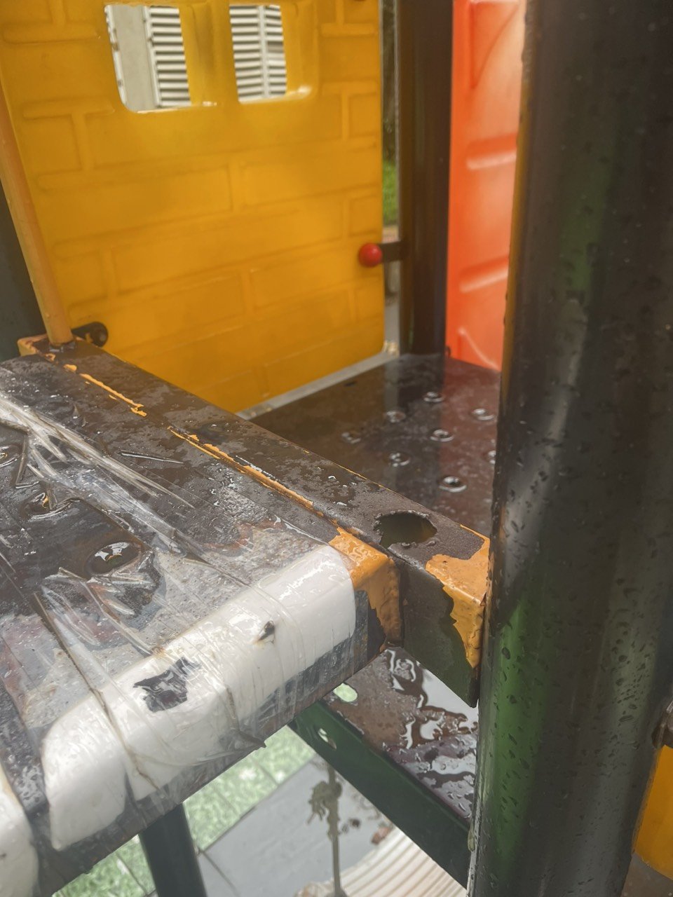 - Hàn lại móc treo xích đu: Các móc treo xích đu bị hỏng đã được hàn lại chắc chắn, đảm bảo an toàn cho trẻ em khi chơi.