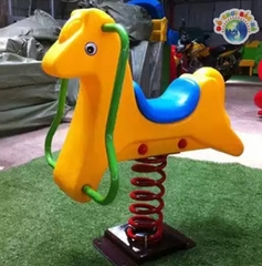 Loại vật liệu bền vững khi sử dụng ngoài trời, có hình dáng là các con vật, có tay cầm và chỗ để chân. Chỗ ngồi có kích thước phù hợp với lứa tuổi nhà trẻ và cách mặt đất tối đa 400mm. Được gắn trên lò xo nhún có đế chắc chắn. Đảm bảo an toàn, chắc chắn, chống lật ngang, lật dọc và chống kẹp chân.