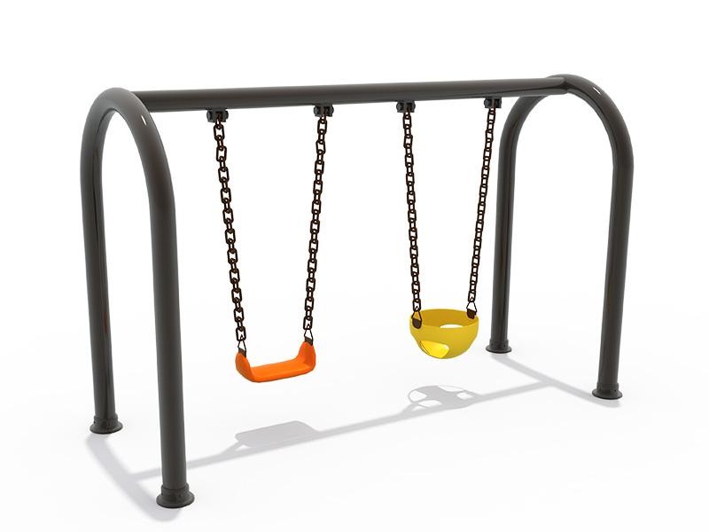 - Chân trụ xích đu chân chữ U : Làm bằng thép ống mại kẽm nhún nóng chỗng rỉ D113.5 dày 4 mm uốn hình chữ U. Đầu cút nối giữa chân và xà ngang bằng cút thép chế tạo dày 6 mm.