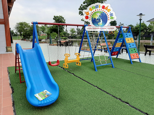 Phát triển não bộ : Sân chơi có xích đu ngoài trời được thiết kế nhiều loại hình chơi. do đó giúp trẻ phát triển não bộ một cách toàn diện nhất. Trẻ có thể tự tưởng tượng, phát hiện về những sự vật, hiện tượng xung quanh chúng.